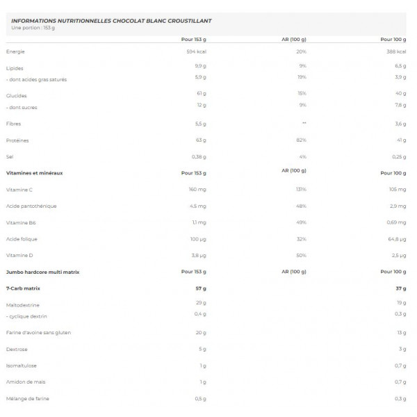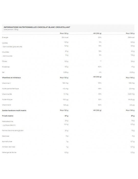 | Jumbo hardcore multi matrix | Pour 153 g | AR (100 g) | Pour 100 g |