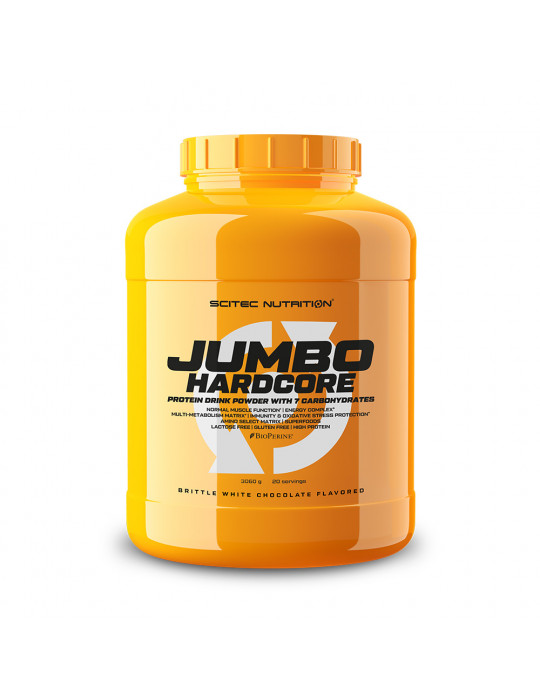 Jumbo Hardcore (3,06kg) est un gainer avec édulcorants de la marque Scitec Nutrition contenant de multiples sources de protéines, de glucides et de créatine.