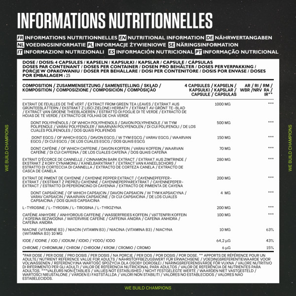 Le REDBURN HARDCORE (100 CAPS) est ton allié essentiel dans ta quête de définition musculaire. Grâce à sa formulation, il stimule la thermogenèse et favorise la mobilisation des graisses, ce qui te permet de viser une diminution significative de ta masse grasse. Recommandé par des coachs et experts, ce brûleur s'intègre parfaitement à ton régime alimentaire pour optimiser ta perte de poids.