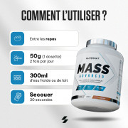 Ingrédients Vanille : maltodextrine 34%, farine d’avoine complète (gluten) 24%, dextrose 20%, amidon de maïs cireux 10%, caséinate de calcium instantanée (lait) [caséinate de calcium (lait), émulsifiant (mono- et diglycérides d’acides gras)] 8%, arômes, poudre de yaourt (lait), épaississant (gomme xanthane), édulcorants (sucralose, acésulfame K), vitamine C (acide L-ascorbique), niacine (nicotinamide), bromélaïne d’ananas (1200 GDU/g) 0,02%, papaïne de papaye (1,5 FIP U/mg) 0,02%, vitamine B6 (chlorhydrate de pyridoxine), vitamine B1 (mononitrate de thiamine), vitamine B12 (cyanocobalamine).