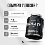 Ingrédients Vanille : isolat de protéines de lactosérum instantané (lait) {isolat de protéines de lactosérum (lait), émulsifiant [lécithines (soja)]} 87%, L-glutamine 5,5%, arômes, cassonade {saccharose, sirop de glucose, graisse de palme, poudre de lait entier, émulsifiant [lécithines (soja)], arôme}, poudre de fromage blanc (lait), édulcorants (sucralose, acésulfame K), protéine de lactosérum hydrolysée instantanée (lait) {isolat de protéine de lactosérum hydrolysée (lait), émulsifiant [lécithines (soja)]} 0,15%.