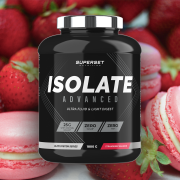 Ingrédients Macaron Fraise : isolat de protéines de lactosérum instantané (lait) {isolat de protéines de lactosérum (lait), émulsifiant [lécithines (soja)]} 89%, L-glutamine 5,5%, arômes (contient de la caféine), acide (acide citrique), édulcorants (sucralose, acésulfame K), poudre de concentré de betterave [maltodextrine, concentré de betterave, acide (acide citrique)], protéine de lactosérum hydrolysée instantanée (lait) {isolat de protéine de lactosérum hydrolysée (lait), émulsifiant [lécithines (soja)]} 0,15%, colorant (caramel sulfite ammoniacal).