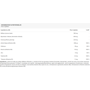 Ingrédients : extrait de feuille de mélisse (Melissa officinalis L.), extrait de fruit de myrobolan chébule (Terminalia chebula Retz.), extrait de racine et de parties aériennes de ginseng (Panax ginseng C.A. Meyer*), enveloppe de la gélule : hydroxypropylméthylcellulose, agent anti-agglomérant : sels de magnésium d’acides gras, carbonate acide de magnésium, levure enrichie en sélénium, niacinamide (vitamine B3), oxyde de zinc, chlorhydrate de pyridoxine (vitamine B6), chlorhydrate de thiamine (vitamine B1), acide ptéroylmonoglutamique (vitamine B9).
