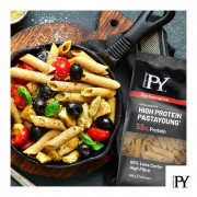 High protein penne (250g) sont des pennes fabriquées en Italie avec des protéines végétales et du blé ! Elles contiennent 55% de protéines ainsi que des BCAA et des acides aminés essentiels. Ce produit est idéal pour les repas après l’entraînement.