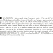 Ingrédients Chocolat : protéines de pois C9 Pisane®, arômes, cacao maigre en poudre, protéine de riz, sel, protéine de coco, protéine de grenade, protéine de citrouille, épaississant (gomme xanthane), édulcorants (sucralose, acésulfame K), cyanocobalamine.