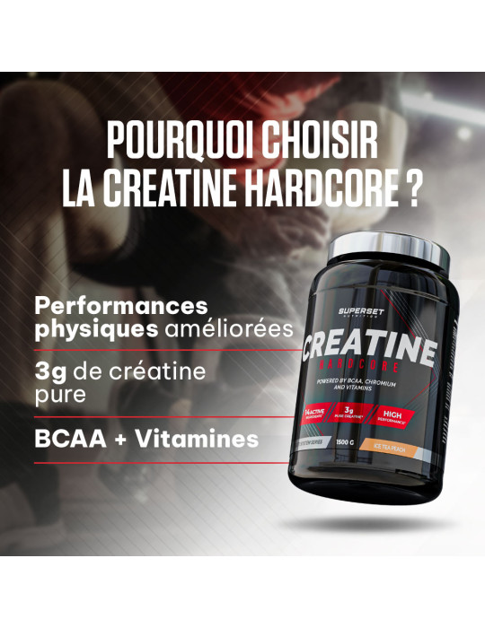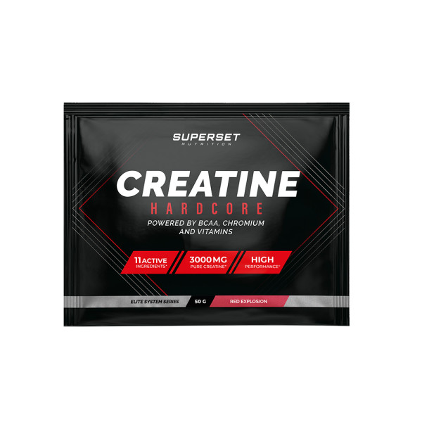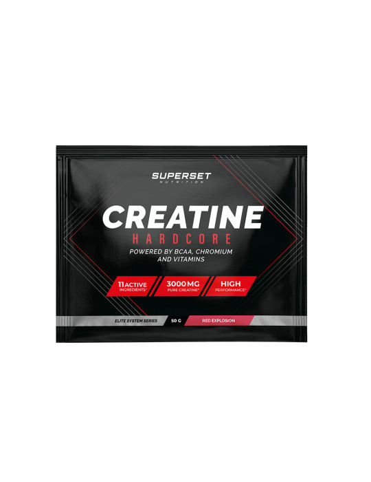Teste la Créatine Hardcore (50 g) de Superset Nutrition avec 14 ingrédients actifs et 3g de créatine par sachet pour t'aider à développer ta masse musculaire.
