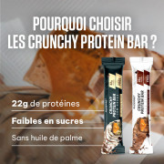 Ingrédients Choco Brownie Caramel : Chocolat au LAIT entier avec édulcorant [édulcorant (maltitol), beurre de cacao, LAIT entier en poudre, pâte de cacao, émulsifiant (lécithine), arôme naturel de vanille bourbon] 31,3%, protéines de LAIT (isolat de protéines de LACTOSÉRUM, CASÉINATE de calcium), couche avec arôme caramel [agent de charge (polydextrose), édulcorant (maltitol), graisse végétale non hydrogénée (huile de coco, karité), beurre de cacao, colorant alimentaire (concentré de pomme et d'hibiscus), émulsifiant (lécithine), sel, arôme naturel], humectant (glycérol), protéines de LAIT (protéines de LAIT, hydrolysat de protéines de LAIT), croustillants de protéines de SOJA (isolat de protéines de SOJA, poudre de cacao, amidon de tapioca) 7,81% hydrolysat de collagène (bovin), eau, chocolat noir avec édulcorant [pâte de cacao, édulcorant (maltitol), beurre de cacao, émulsifiant (lécithine), arôme naturel de vanille bourbon] 2,34%, poudre de cacao dégraissée, arôme cellulose microcristalline, sel.