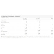 Ingrédients - saveur ultra violet : eau gazeuse, exhausteur de goût (érythritol), correcteur d'acidité (acide citrique), taurine (0,4%), correcteur d'acidité (citrate de sodium), arômes, concentrés de jus de sureau et de carotte noire, conservateurs (acide sorbique, acide benzoïque), caféine (0,03%), édulcorants (sucralose, acésulfame-K), L-carnitine L-tartrate (0,015%), vitamines (B3, B5, B6, B12), inositol.