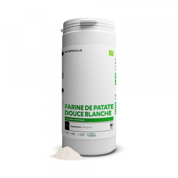 La farine de patate douce à chair blanche, de Nutrimuscle est cultivée de manière biologique par des agriculteurs du sud du Bénin, dont toutes les étapes, sont effectuées manuellement. La récolte respecte ainsi les normes biologiques strictes, en collaboration avec les producteurs locaux. Label commerce équitable : Fair for Life.