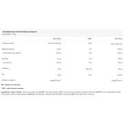 Ingrédients - saveur Chocolat : isolat de protéines de lait (MPI) non instantanéisé (58%), concentrat de protéines sériques natives du lait (WPC) non instantanéisé (35%), cacao maigre en poudre biologique (5%), arômes (1%), inuline, β-galactosidase (lactase) (<1%), Bacillus coagulans GBI-30 6086 (contient du lait) (<1%), édulcorant: sucralose.
