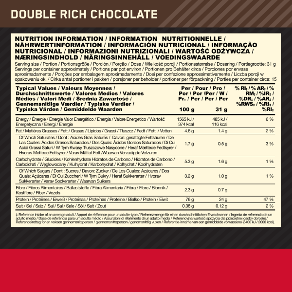 Avec plus de 24g de protéines par dose, la 100% Whey Gold d'Optimum est une protéine parfaite pour construire de la masse maigre ! 100% Whey Gold est un mélange de protéines concentrate et isolat de lactosérum.