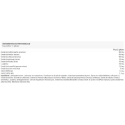 Ingrédients : Antiagglomérant : carbonate de magnésium, Enveloppe de la gélule végétale : hydroxypropylmethylcellulose, Extrait de mélilot (Melilotus officinalis L.), Extrait de livèche (Levisticum officinale), Extrait de shatavari (Asparagus racemosus Willd.), Extrait de ginseng (Panax Ginseng CA Meyer), Extrait de tribulus (Tribulus terrestris), L-arginine, Antiagglomérant : sels de magnésium d‘acides gras, Extrait de boswellia (Boswellia serrata), Extrait de poivre noir (Piper nigrum), Cyanocobalamine (vitamine B12), Riboflavine (vitamine B2)