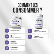 Les compléments alimentaires doivent être utilisés dans le cadre d’un mode de vie sain et ne pas être utilisés comme substituts d’un régime alimentaire varié et équilibré. Ne pas dépasser la dose journalière recommandée. Tenir hors de portée des enfants. Traces possibles : lait, œufs, gluten, soja, cacahuètes, noix, céleri, poisson, crustacés, mollusques et aliments contenant du dioxyde de soufre.