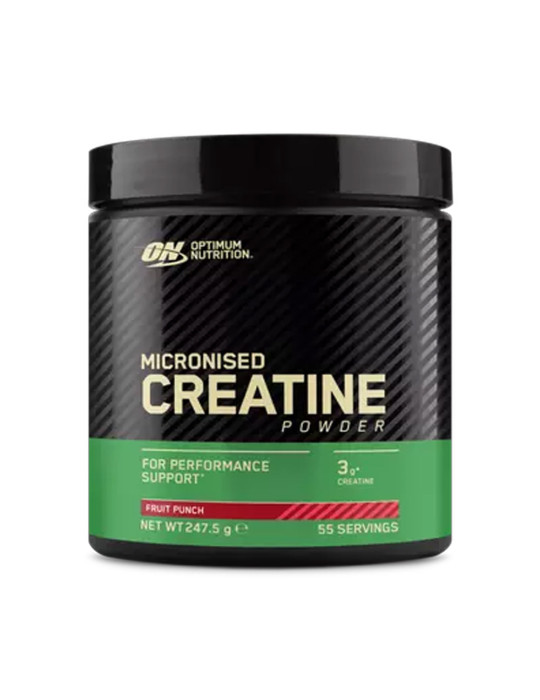 La Micronized Creatine (247,5g) d’Optimum Nutrition est une poudre 100 % pure de créatine monohydrate micronisée, sans arôme ni additifs. Idéale à intégrer dans ta routine sportive, elle te permet de soutenir tes performances lors d’efforts courts et puissants, sans rien de superflu.