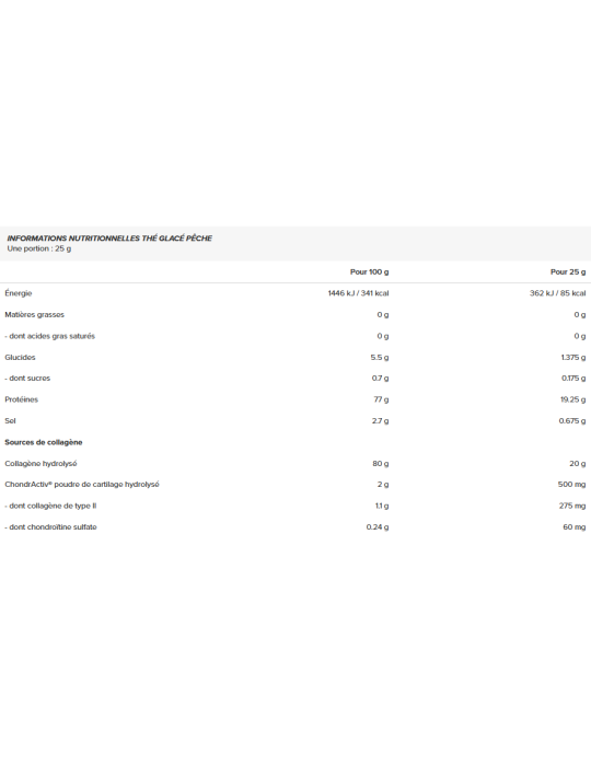 | ChondrActiv® poudre de cartilage hydrolysé | 2 g | 500 mg |