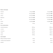 Ingrédients - saveur Tropical : matrice de glucides (maltodextrine, dextrine cyclique hautement ramifiée), isolat de protéines de bœuf, acidifiant (acide citrique), arôme, monohydrate de créatine, L-leucine, taurine, L-isoleucine, L-valine, bisglycinate de calcium, bisglycinate de magnésium, citrates de potassium, colorant (extrait de curcumine), antiagglomérant (dioxyde de silicium), édulcorant (sucralose), mélange probiotique Probiwin™ (Saccharomyces boulardii, Lactobacillus acidophilus, Bifidobacterium longum, Bifidobacterium infantis, Lactobacillus casei, Lactobacillus rhamnosus, Streptococcus thermophilus, Lactobacillus plantarum, Bifidobacterium breve, Bifidobacterium bifidum), vitamine C (acide L-ascorbique), gluconate de zinc. Complexe enzymatique DigeZyme® (amylase, protéase, cellulase, lactase, lipase), AstraGin® (extrait d'Astragalus Membranaceus [racine] et extrait de Panax Notoginseng [racine]), niacine, acide pantothénique, vitamine B6, thiamine, picolinate de chrome, vitamine B12.