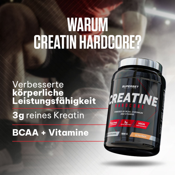 Zutaten Ice Tea Peach : Dextrose 51%, Wachsmaisstärke, Kreatinmonohydrat 6,8%, Säuerungsmittel (Zitronensäure), Säureregulatoren (Kaliumgluconat, Calciumgluconat, Magnesiumoxid), L-Leucin 1,5%, Aromastoffe, L-Isoleucin 0,75%, L-Valin 0,75%, Farbstoff (Ammoniakkaramell), Süßungsmittel (Sucralose), Nikotinamid, Salz, Thiaminmononitrat, Pyridoxinhydrochlorid, Cyanocobalamin, Chrom(III)-chlorid.