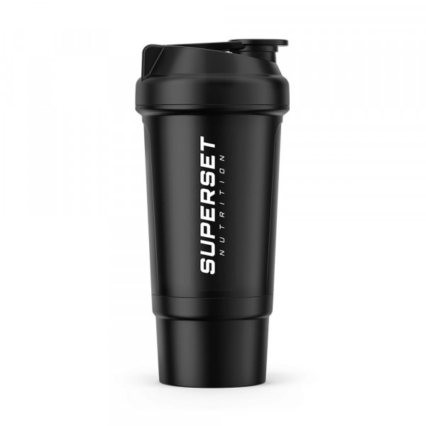 Dieser Shaker mit einer Füllmenge von 100 bis 500 ml und einem Fach unter Superset Nutrition ergänzt nun die Superset-Produktreihe.