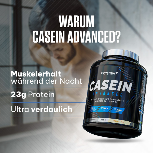 | Proteine - davon Milcheiweißkonzentrat - davon Calciumcaseinat - davon mizellares Kasein | 22 g 36% 35% 7% | 45% - - - | 75 g 36% 35% 7% | 149% - - - |