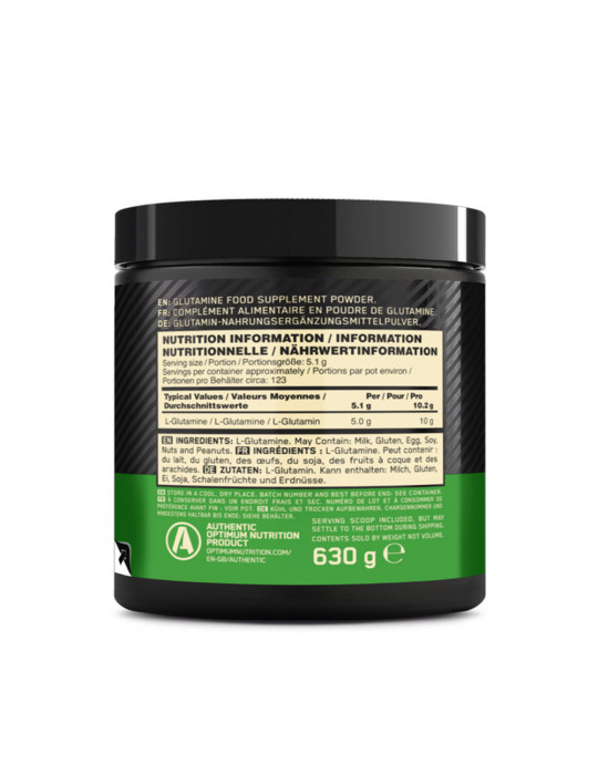 Optimum Glutamine Powder 5000mg ermöglicht es, die tägliche L-Glutamin-Quote zu ergänzen, die du je nach deinen Bedürfnissen, ob Sportler oder nicht, dosieren kannst.