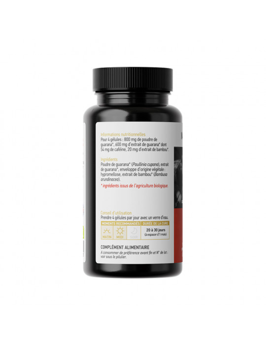 DieKapseln bestehen ausGuaranasamen-Extrakt, der stimulierend und energiespendend wirkt, und enthalten eine hohe Konzentration an Guaranin, das ähnliche Wirkungen wie Koffein hat. Guaranin hilft, die Wachsamkeit zu senken und das Energieniveau zu erhöhen.