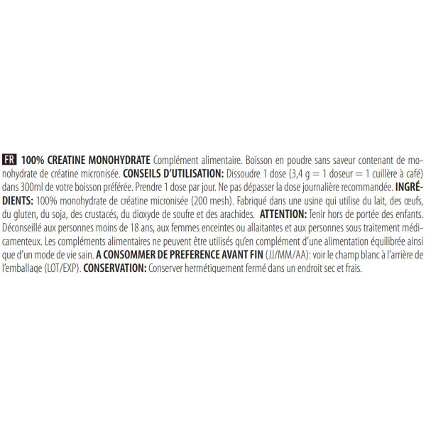 Zutaten: 100% mikronisiertes Kreatinmonohydrat (200 mesh).