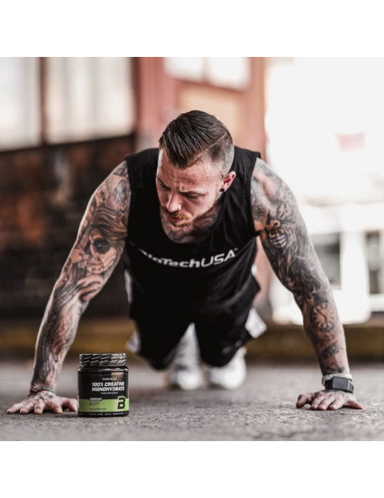 Kreatin ist ein unter Sportlern bekanntes Nahrungsergänzungsmittel. Deshalb bietet dir Biotech eine Formel aus 100% mikronisiertem Kreatinmonohydrat. Mit 3 g Kreatin pro Tag zeigen Studien, dass Kraftsportler bei kurzen und intensiven Belastungen an Kraft und Explosivität gewinnen können.