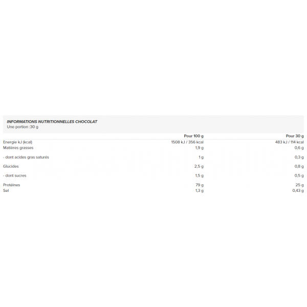 Dieses Produkt enthält 21 g Protein (Molkenproteinisolat) pro Dosis. Sein Proteingehalt trägt zum Wachstum und zur Erhaltung deiner Muskeln bei.