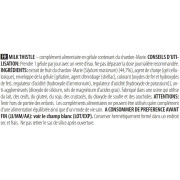 Zutaten: Mariendistelfruchtextrakt (Silybum marianum) (44,7%), Füllstoff (Zellulosegel), Kapselhülle [gélatine, agent d’enrobage (shellac), colorant (oxydes de fer et hydroxydes de fer), régulateur d’acidité (hydroxyde d’ammonium), régulateur d’acidité (hydroxyde de potassium)], Trennmittel (Siliciumdioxid, Magnesiumsalze von Speisefettsäuren).
