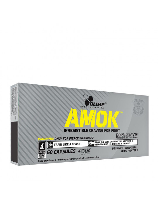 Amok (60 Kapseln) ist ein Nahrungsergänzungsmittel, das deine Motivation und Belastbarkeit steigern soll. Dieses Produkt boostet deine Kraft während des gesamten Trainings.