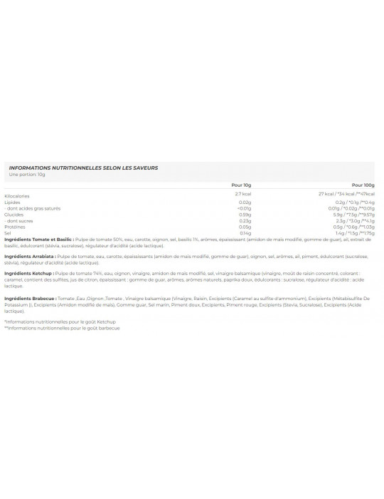 Sie basieren auf Tomatenmark und Aromaten und ermöglichen es dir, deinen Gerichten Geschmack zu verleihen, ohne die Kalorienzahl zu erhöhen!