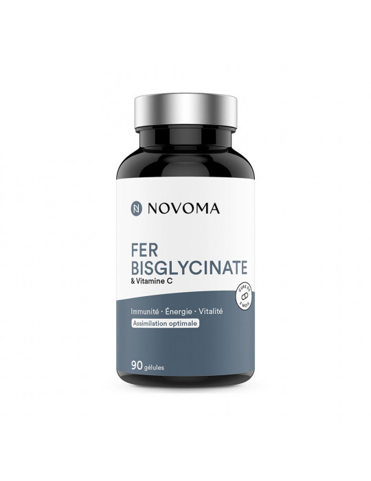 Novoma hat sich für ein patentiertes Eisenchelat, das Eisenbisglycinat Ferrochel®, entschieden, das sich durch eine hervorragende Assimilation und eine perfekte Darmverträglichkeit auszeichnet. Seine Wirksamkeit wurde übrigens in mehr als 100 klinischen Studien nachgewiesen.