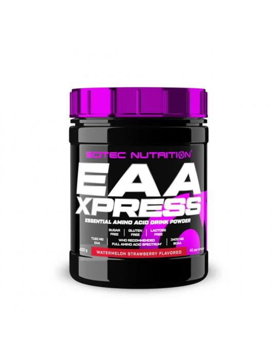 EAA express (400g) von der Marke Scitec Nutrition ist eine Mischung aus essentiellen Aminosäuren, die ideal für den Aufbau, die Reparatur und die Erholung von Muskeln ist.
