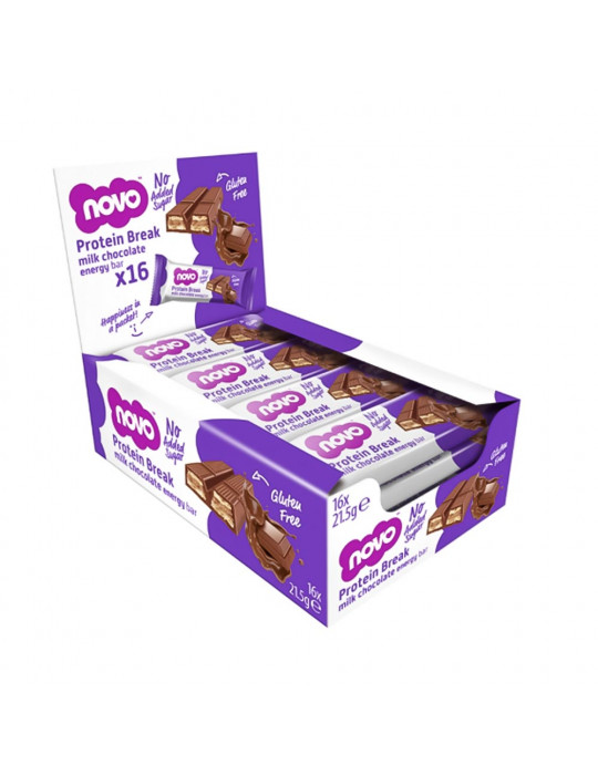 Die neuen Riegel der Marke Novo Nutrition, die Protein break bar, sind im 16er-Pack (16x21,5 g) erhältlich.