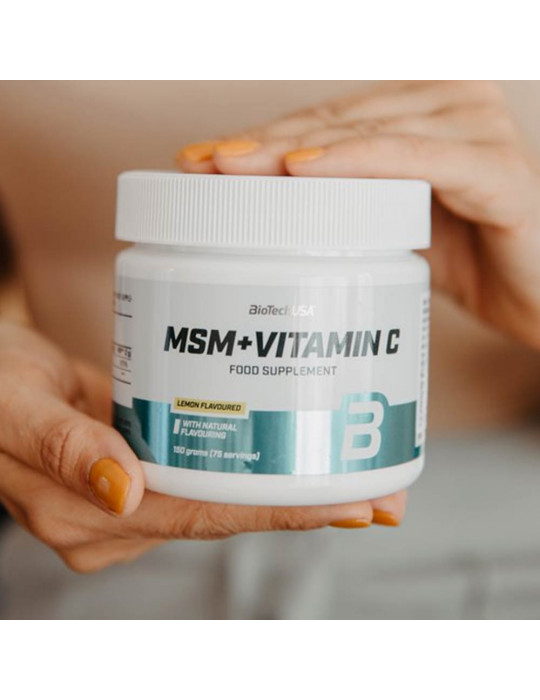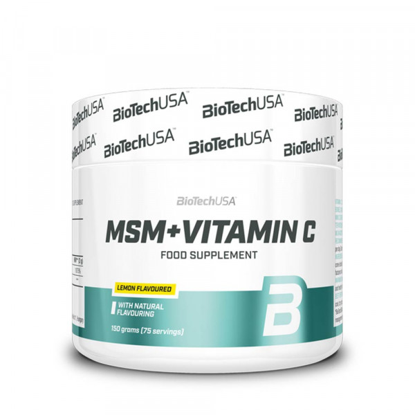 Msm + Vitamin C (150g) ist ein Nahrungsergänzungsmittel in Pulverform mit Süßstoff der Marke Biotech USA.