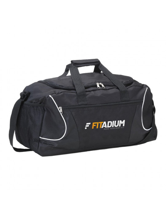Die schwarze Sporttasche Fitadium misst 55 cm, sie ist also weder zu voluminös noch zu klein, aber dennoch sehr geräumig.