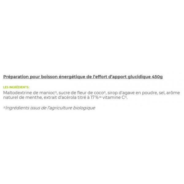 Zutaten - Zitrusgeschmack : getrockneter Manioksirup D.E 10(1), Kokosblütenzucker(1), natürliches Orangenaroma, natürliches Zitronenaroma mit anderen natürlichen Aromen, Salz, Acerolaextrakt mit 17 % Vitamin C(1). (1)Zutaten aus ökologischem Landbau