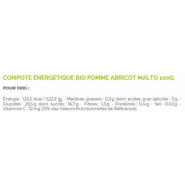 Das Bio-Energie-Kompott (100g) der Marke Atlet ist ein Energieprodukt in Form eines Kompotts, das zu 80 % aus Fruchtpüree besteht .