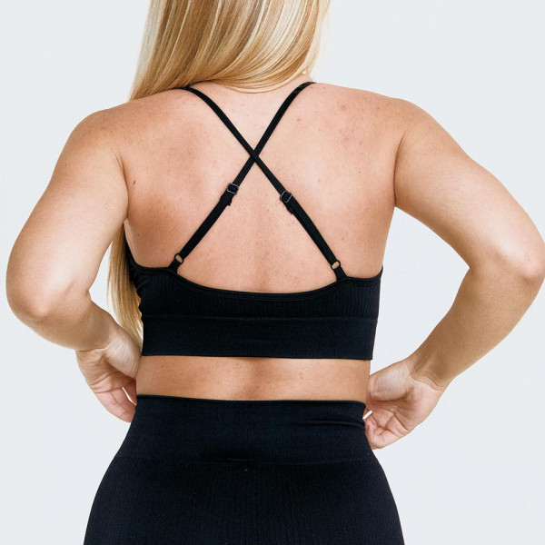 Mit seinem V-Ausschnitt und den verstellbaren Trägern, die im Rücken gekreuzt sind, passt sich der BH den Bewegungen deiner Haut an und lässt deine Schultern und deine Brust schmaler wirken. Dieses Sportoberteil fühlt sich ultraweich an und hat herausnehmbare, gepolsterte Cups für einen guten Halt und einen Push-up-Effekt.