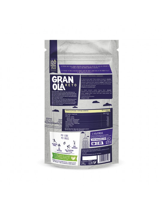 Das Keto-Granola der Marke La Newyokina ist ein Granola, das für die ketogene und paläolithische Diät geeignet ist.