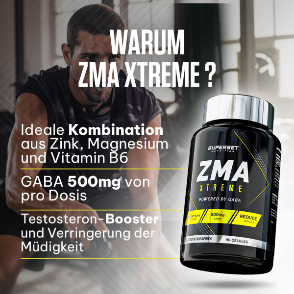 Das ZMA XTREME (90 CAPS) der französischen Marke Superset Nutrition kombiniert drei für Sportler wichtige Nährstoffe: Zink (15 mg), Magnesium (250 mg) und Vitamin B6 (2 mg), alles sorgfältig dosiert, um optimale Ergebnisse zu liefern.