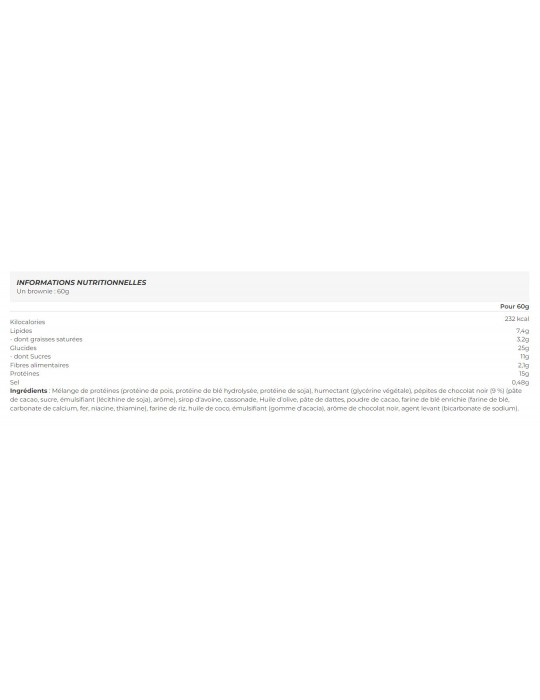 Er ist nämlich reich an Protein (25 %), d. h. 15 g Protein pro 60-g-Brownie. Protein ist der Hauptbestandteil von Muskeln und trägt zur Erhaltung und zum Aufbau von Muskeln bei.