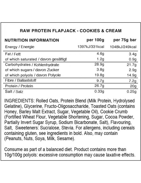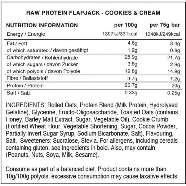 Der Raw Protein Flapjack liefert dir jede Menge Energie für dein intensives Training und dank der Proteine, die dir beim Aufbau deiner Muskelmasse helfen.