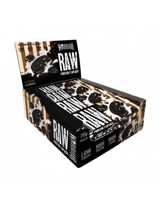 Die Raw Protein Flapjack Box (12x75g) der Marke Warrior sind Proteinriegel mit jeweils 75 g.