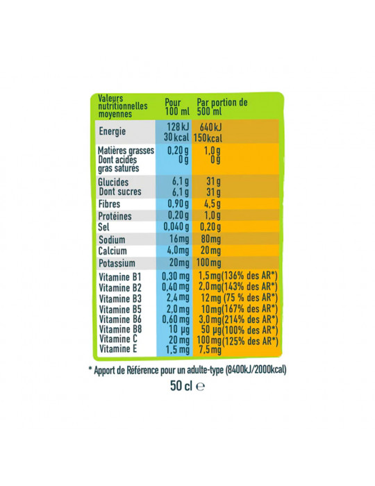 Dieses Getränk ist ein echtes Mittel gegen Ermüdungserscheinungen, da es die Vitamine C und B6 enthält, die helfen, die mit der Anstrengung verbundene Müdigkeit zu bekämpfen. Das in diesem Getränk enthaltene Vitamin B2 trägt dazu bei, die Zellen vor dem durch körperliche Betätigung verursachten oxidativen Stress zu schützen. Es wirkt wie ein wirksames antioxidatives Schutzschild! Neben der Bereitstellung einer bedeutenden Menge an Vitaminen bietet es auch eine Energiezufuhr dank der Glukose und Fruktose aus den im Getränk enthaltenen Früchten.