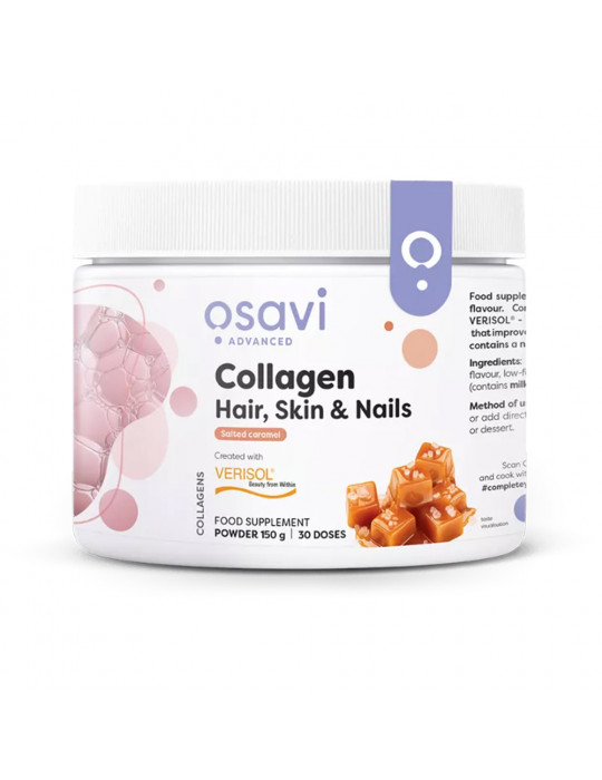 Collagen peptides hair, skin & nails (150g) ist ein Nahrungsergänzungsmittel in Pulverform, von der Marke Osavi.