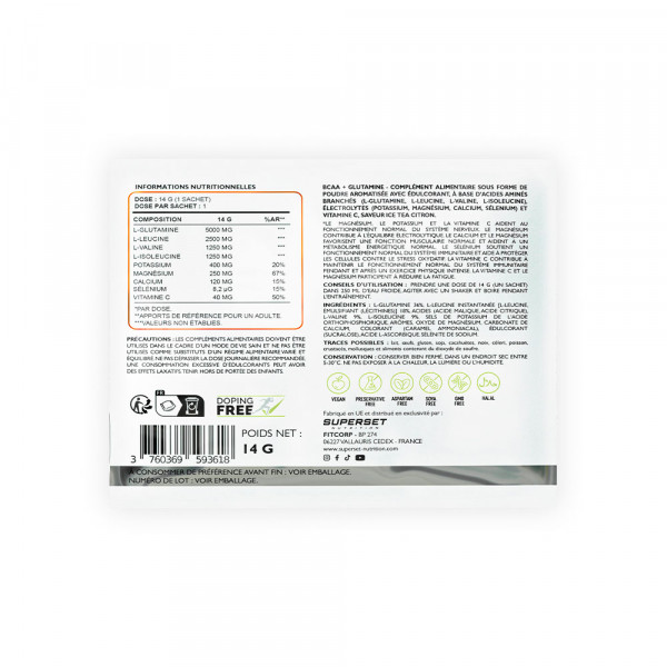 Entdecke die Formel BCAA + GLUTAMIN (420g), die unumgängliche Wahl für alle Athleten, ob Triathleten, Radfahrer, Marathonläufer oder leidenschaftliche Kraftsportler. Dank seiner mit aktiven Inhaltsstoffen angereicherten Zusammensetzung hilft dir diese 3-in-1-Lösung, deine Energie, Ausdauer und Erholung zu steigern.