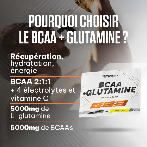 Entdecke die Formel BCAA + GLUTAMIN (420g), die unumgängliche Wahl für alle Athleten, ob Triathleten, Radfahrer, Marathonläufer oder leidenschaftliche Kraftsportler. Dank seiner mit aktiven Inhaltsstoffen angereicherten Zusammensetzung hilft dir diese 3-in-1-Lösung, deine Energie, Ausdauer und Erholung zu steigern.