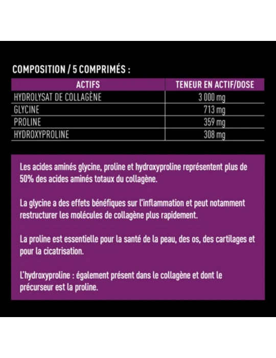 Findet eine hochwertige Formel mit hoch assimilierbaren Kollagenpeptiden. Dieses Nahrungsergänzungsmittel besteht aus 3000 mg Kollagenhydrolysat, 713 mg Glycin, 359 mg Prolin und 308 mg Hydroxyprolin pro Dosis.
