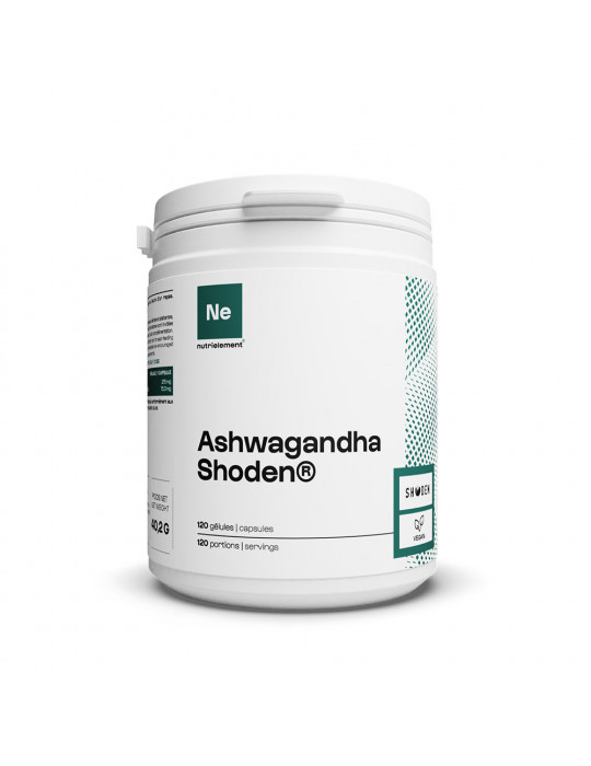 Ashwagandha Shoden (120 Kapseln) von Nutrielement ist ein Nahrungsergänzungsmittel auf der Basis von Ashwagandha, das in Kapseln angeboten wird.